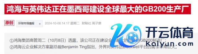 客岁 10 月,富士康走漏公司正在墨西哥建树寰球最大的英伟达 GB200 制造厂,以匡助缓解外界对英伟达 Blackwell 平台的浩大需求。